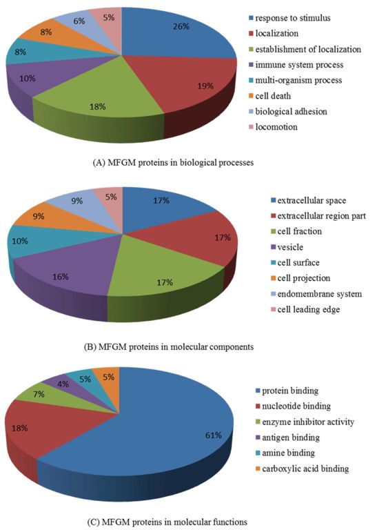 图6. 对牛乳和人乳里在不同泌乳时期有表达差异的乳脂球膜蛋白进行基因本体标注
